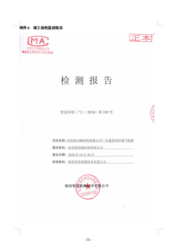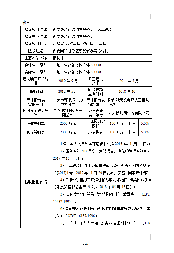 西安鐵均鋼構廠區建設-驗收監測報告(廢水、廢氣)